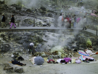 年間何十万人もの人々がからだを癒しに訪れ、なかなか宿の予約がとれないこともある玉川温泉。人々を玉川温泉にひきつけるのは、世界でもまれな湯量、泉質を誇る温泉だけではなく大地にからだを横たえの大地の力を直接からだに受けとめる岩盤浴です。その玉川温泉の岩盤浴の力の源は地熱と北投石の微量放射線です